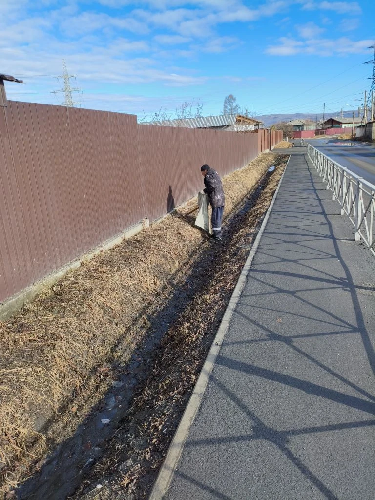 Откачка талых вод (ул.Менделеева),уборка мусора (общественные территории),чистка водосточных канав (ул.Советская,пер.Безымянный).