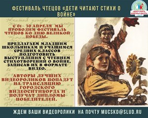 Предлагаем младшим школьникам и учащимся средних классов подготовить выступления с чтением стихотворений о войне, записав их в формате видео.