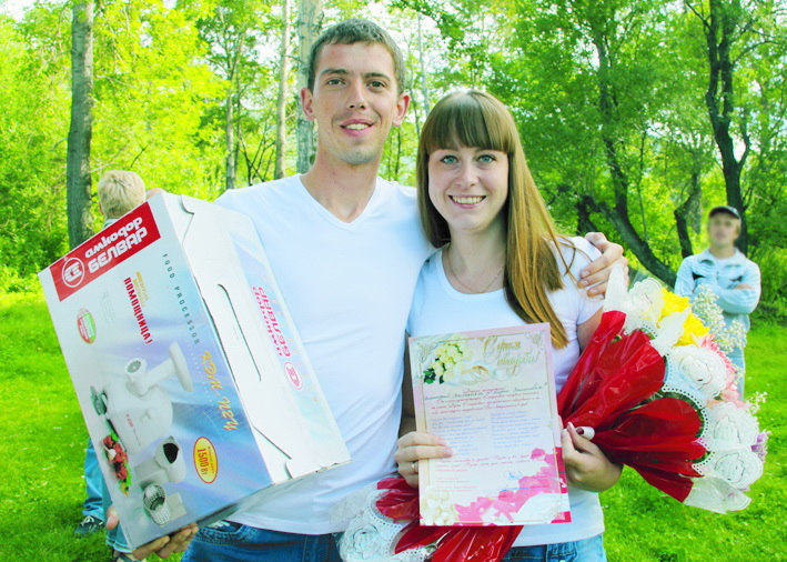 Новобрачным Дмитрию и Марии Александровым и Сергею и Анастасии Фроловым были вручены подарки, а на слова «Горько!» молодые ответили соответствующим образом, показав, что очень даже сладко. Поздравления, подарки получили и семьи, прожившие в браке 50 лет: Тамара Васильевна и Василий Прохорович Гурзо и Лидия Деонисовна и Владимир Григорьевич Тимофеевы.