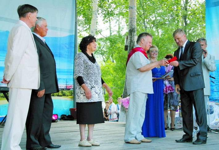 2 августа Слюдянка торжественно и красиво отметила День города и День железнодорожника. По традиции в этот день поздравления принимали все пришедшие на праздник в парк на берегу Байкала. Подарки и цветы (тоже традиционно) семейным парам-юбилярам, молодоженам, самым юным жителям Слюдянки и почетным гражданам вручили глава города В.Н. Сендзяк и председатель Думы А.В. Тимофеев. Особенные поздравления прозвучали в честь воинов-афганцев (на снимке) и профессионалов железной дороги.