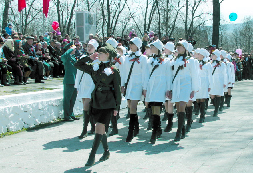 Как всегда, от трудовых коллективов слюдянцам, погибшим на фронтах войны, были возложены венки и гирлянды. Затем состоялся парад юнармейцев школ города, который принимал подполковник А.А. Николаев. Как всегда, все было четко, красиво, за что, конечно, благодарность ученикам, учителям и директорам школ.