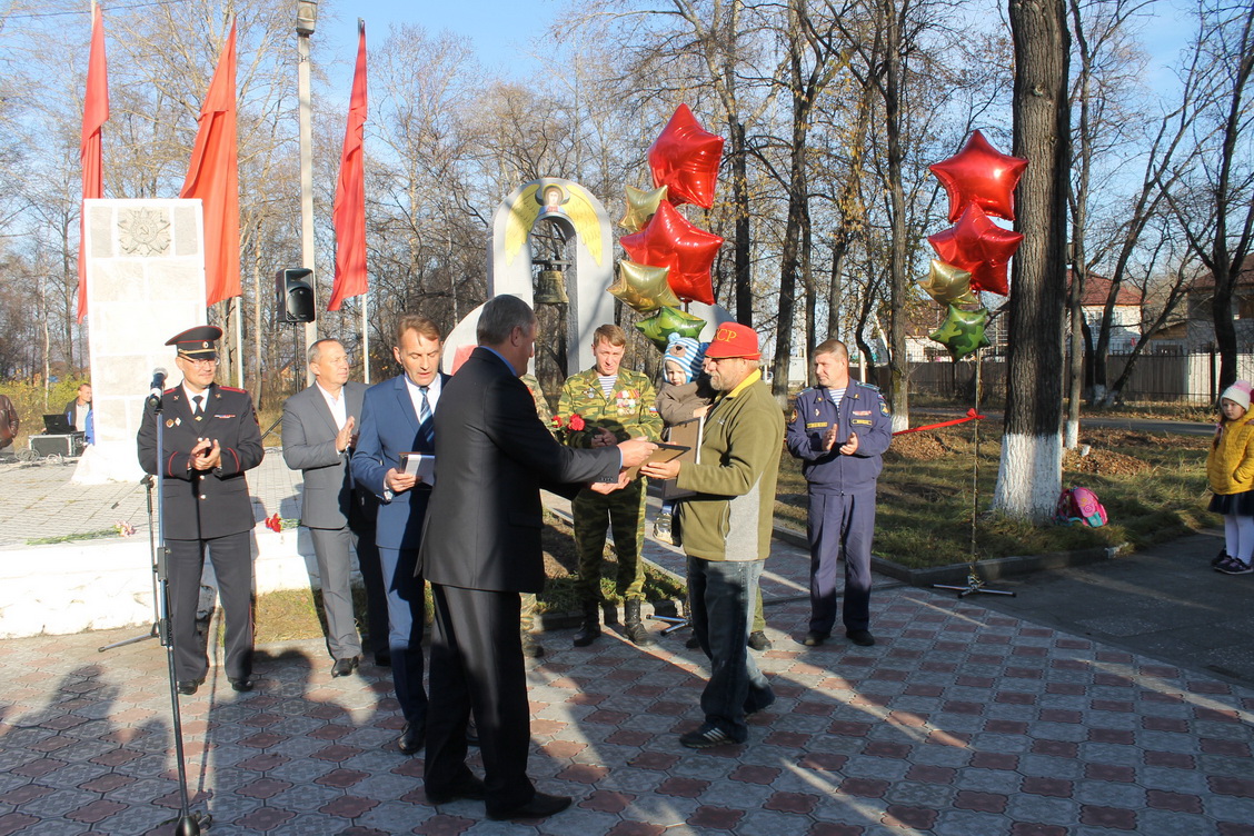 11 октября в святом для каждого слюдянца месте в парке «Перевал» у мемориала погибшим землякам в Великой Отечественной войне прошел митинг, посвященный открытию памятника воинам- интернационалистам, памятника всем тем, кто погиб в Афганской и Чеченской войнах и других локальных конфликтах. Автором памятника «Колокол- символ вечной памяти тем, кто не вернулся с полей сражений» стал байкальский художник, скульптор Андрей Евгеньевич Пылюх, который и прежде вносил свой вклад в оформление центральной аллеи парка. В торжественном строю застыли ребята – учащиеся школы № 1 и юноармейцы – моряки школы № 2, подразделение полиции Слюдянского отдела МВД, жители города, представители общественных организаций города и района.