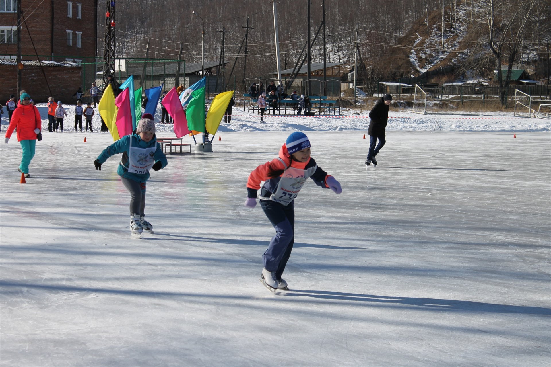 Показать свое мастерство в беге на коньках на стадион «Перевал» пришли дети и подростки. Здесь прошли соревнования «Хрустальный конек» на приз Байкальского Деда Мороза. Свежевычищенный и залитый лед сверкал своей нетронутой красотой! Еще немного и десятки юных конькобежцев оставят на нем свои быстрые, острые росчерки. Для оказания помощи в случае необходимости дежурит «скорая», ведь безопасность при проведении любых соревнований всегда на первом месте. Именно во имя безопасности пришлось отказаться от красивой идеи провести эти соревнования на льду Байкала, убедившись, что выровнять беговую дорожку на «отлично» не получится, так как трещины появляются ежечасно. Всего зарегистрировались 60 детей в возрасте до 15 лет. Самой юной Юличке Ивановой всего 4 года По сравнению с прошлым годом количество участников увеличилось и это радует.. Организованно на соревнование вместе с учителем физической культуры Ольгой Шорстовой пришли ученики школы № 50. Приехали наши соседи из Байкальска. Большинство детей пришли вместе с родителями, бабушками и дедушками. Самая массовая возрастная категория – дети от 8 до 10 лет. Бурундучок Ероша, символ многих соревнований и мероприятий, вместе со спортсменами встал на торжественное построение. Звучат приветственные слова, гимн России. Старт соревнованиям дан! Забеги начинаются попарно с самых маленьких, начинающих конькобежцев до 7 лет. Среди этих малышей уже есть ребята не просто уверенно стоящие на коньках, но и готовые соревноваться с более старшими спортсменами. Взрослые конькобежцы размеренно распределяют свои силы, умело используют ускорение, мастерски входят в повороты. Не всем покоряется дистанция, но ребята не сдаются, даже упав, поднимаются и добегают до финиша. Вот это воля к победе! Вот это победа над собой! А побороться есть за что. Призеров ждут медали, грамоты и самый главный, очень красивый приз – Кубок «Хрустальные коньки»! Это не простая награда. Этот приз изготовлен мастерами иркутской компании БрендБук и по дизайну, красоте и оригинальности занял первое место в конкурсе наград из акрила со всей России в Москве! Пока участники и зрители пьют вкусный чай со сластями, судьи подводит итоги соревнований. Лучшие результаты в этот раз показали в возрастных категориях: