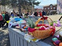 Пасхальная ярмарка на площади раскрыла свои торговые ряды многочисленными куличами, выпечкой, сувенирами. Мастер – класс от индивидуального предпринимателя Марины Александровны Бурлаковой предлагал собственноручно поучаствовать в украшении кулича всевозможными посыпками, помадками, цукатами, глазурью, а детский сад № 6 – изготовить пасхальную открытку и от желающих проявить свою фантазию не было отбоя. Ребята из школы № 1 не забыли русских традиций и продемонстрировали умение в изготовлении традиционной тряпичной куклы – мотанки, а также искусство шитья мягкой игрушки. Дом детского творчества выставил лучшие работы по бисероплетению, всевозможные поделки – украшения пасхального стола, картины и панно. Чего только не было на ярмарочных столах – расписные пряники манили своей глянцевой глазурью, яркие поделки из ткани, бумаги, перьев, яйца, украшенные в разной технике, трогательные цыплята, куклы и игрушки притягивали взгляд. На сцену слюдянские хозяйки выставили свои пасхальные корзинки, наполненные куличами, яйцами для обряда освещения, который провел Отец Олег. Кулич – один из главных символов Пасхи, в воскресенье будет на каждом столе, в каждом доме. Многие хозяйки сами пекут куличи по своим проверенным рецептам, они готовятся с любовью и в особом, умиротворенном расположении духа. Но и куличи изготовленные кондитерами ОО «Траст» и И.П. Бурлаковой М.А., купленные на такой ярмарке, несомненно придутся по вкусу. Все горожане, кто посетил этот праздник, организованный в первый раз с таким размахом, выражали пожелание и впредь проводить общегородскую пасхальную ярмарку.