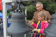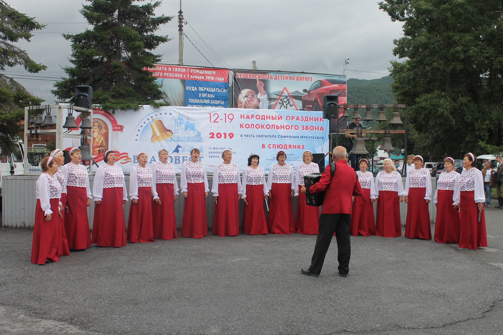 С утра 15 июля зарядил не по-летнему прохладный, затяжной дождь и синоптики прогнозировали такое поведение погоды на весь день до вечера, но организаторы фестиваля верили, что православных сибиряков не испугает никакая непогода, да и Бог не позволит силам природы сорвать долгожданный праздник. Так и случилась… К назначенному времени дождь прекратился, а во время звучания колоколов на передвижных звонницах, установленных на сцене на центральной площади, солнышко выглянуло из-за туч, заинтересованное происходящим. А посмотреть и послушать было что. Лучшие звонари из столицы Приангарья, Новосибирска, Красноярска, Кемерова, Томска, Улан-Удэ, Нерчинска и Хабаровска дарили свое мастерство собравшимся. Каждый демонстрировал свой особый почерк, разные виды звонов и перезвонов, разговаривая со слушателями на своем особом музыкальном языке. Каждого мастера представил ведущий праздника, председатель думы Слюдянского городского поселения Александр Владимирович Тимофеев. Настоятель слюдянского Свято Никольского храма, протоирей Олег Ушаков открывая праздник, назвал его народным, посвященным не только православному и церковному искусству колокольного звона, но и всей русской культуре, ее неисчерпаемому богатству и нерушимой связи. Слюдянцев и гостей города поздравил с праздником колокольного звона исполняющий обязанности главы Слюдянского муниципального образования Олег Васильевич Хаюк, он пожелал зрителям и участникам фестиваля мира и добра, а также выразил надежду на возможность в следующем году принимать в нашем городе мастеров колокольного звона. Украшением праздника стали выступления творческих коллективов Слюдянского района, танцевального ансамбля «Гармония» с лиричным танцем «В горнице моей светло» (руководитель Елена Киселева) и народного хора «Байкальские зори» (руководитель Геннадий Шульгин) с задушевными песнями о России. Замечательные рукодельницы, мастера прикладного творчества Ильина Светлана Александровна, Шишкина Анжела Витальевна и самобытная художница Передериенко Ольга Александровна представили свои работы: картины, панно, вышивки, изделия из текстиля, дерева, пряжи. По окончании выступления профессиональных звонарей всем желающим была предоставлена возможность попробовать свои силы в искусстве колокольного звона.