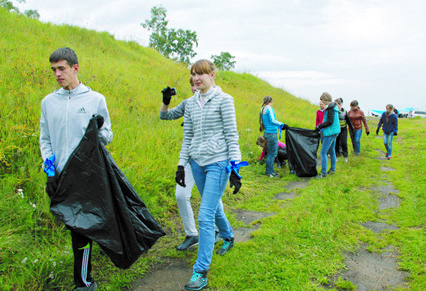 Мешками и перчатками участники акции были обеспечены в достаточном количестве, неподалеку стоял трактор, готовый принять мешки с мусором. Разделившись на группы, волонтеры в течение двух часов убрали мусор на довольно большой территории. Отправившись с одной из групп на Шаманский мыс, я побеседовала с организатором акции Верой Михайловной Шленовой.