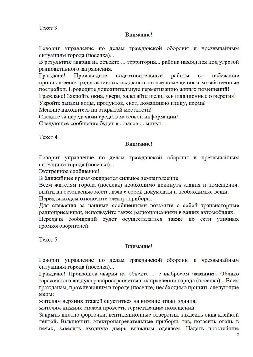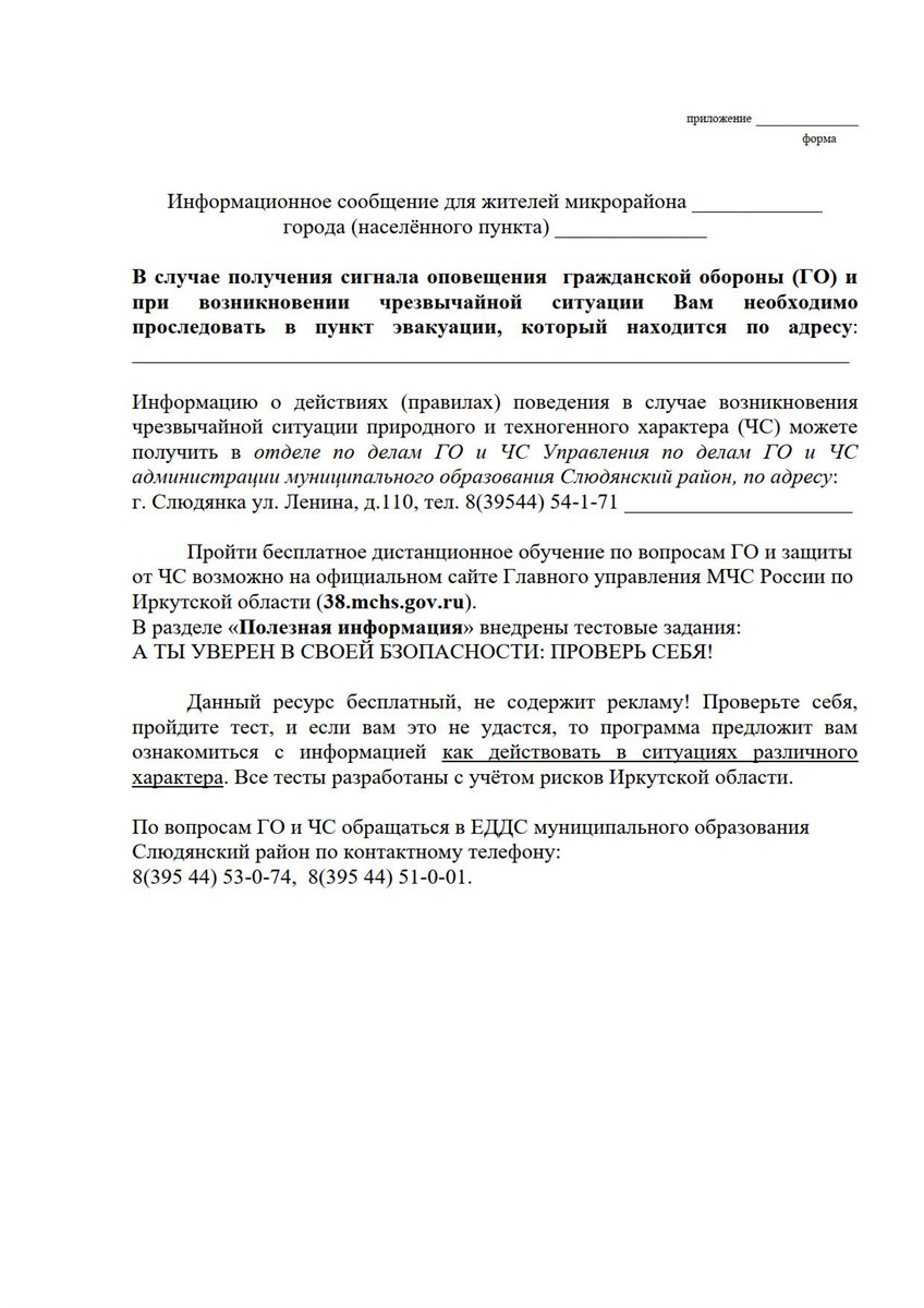 - эвакуироваться в безопасный район или пункт временного размещения населения.