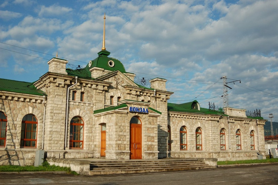 Вокзал города Слюдянки — единственное в России здание, целиком построенное из белого и розового нешлифованного мрамора.